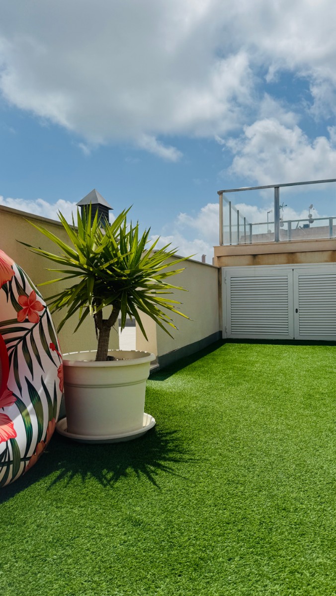 El edificio dispone de ascensor, piscina y terraza en la azotea con solárium y vistas a la ciudad. La vivienda está completamente amueblada y equipada: incluye muebles modernos, TV, microondas, horno, placa de inducción, lavadora, secadora, vajilla, utensilios de cocina y juegos de sábanas nuevos. Todo en perfecto estado, recién pintado y muy bien cuidado.